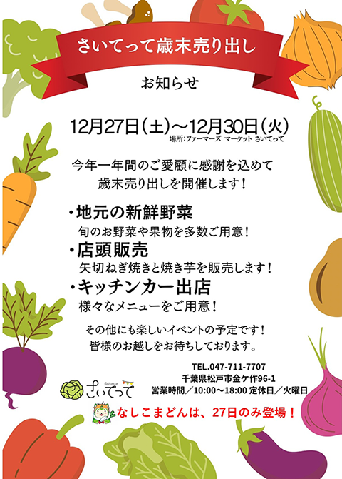 ◆12月27日(土)~30日(火)さいてって歳末売り出しを開催いたします。