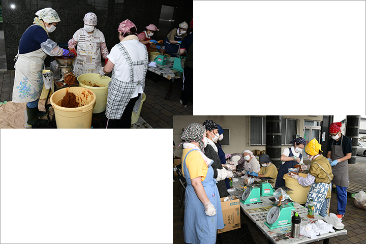 流山女性部総支部・八木支部は、今年1月に味噌づくりを始め、今回は出来上がった味噌の天地返しを行いました。